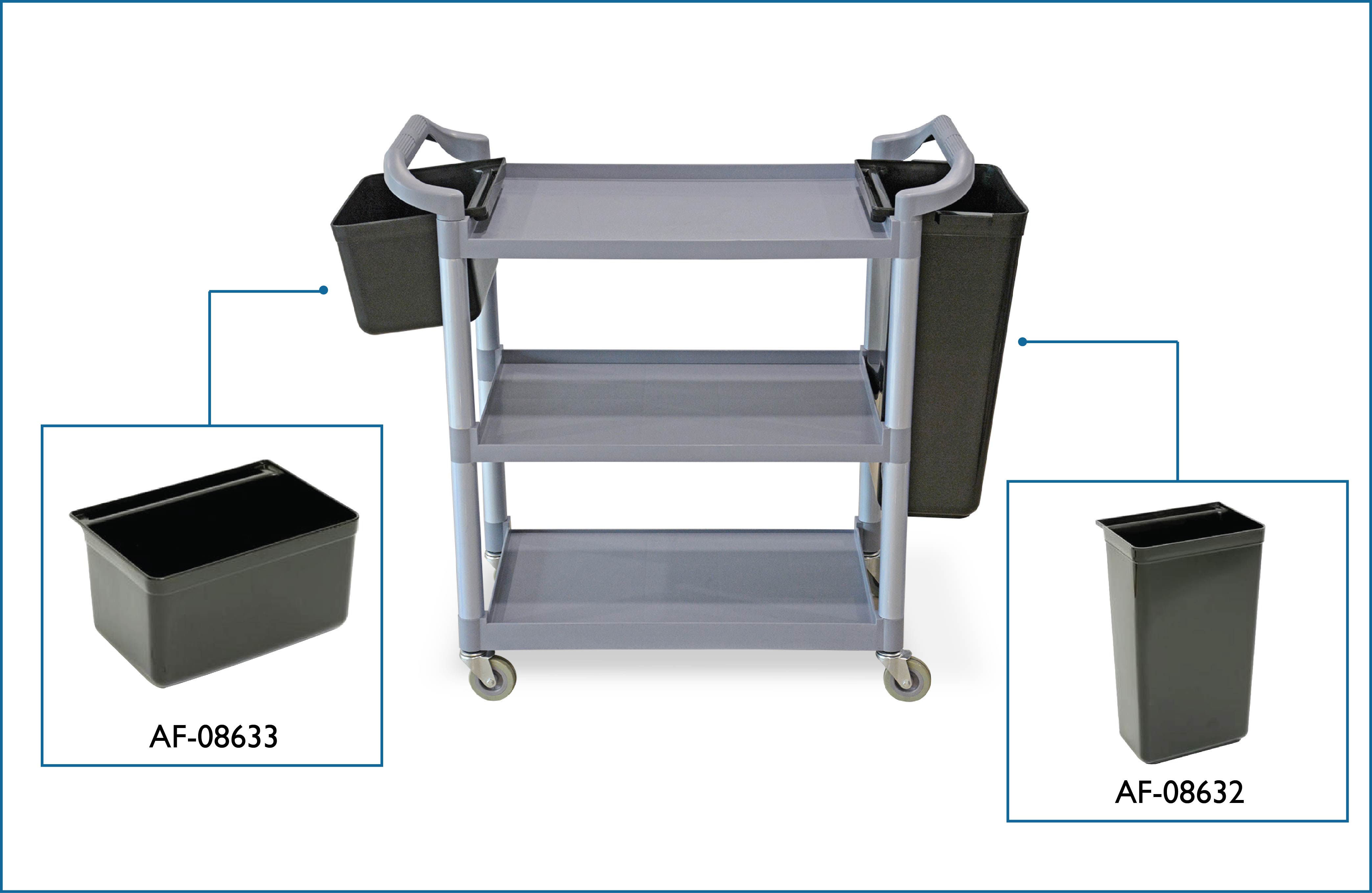 KOMADA 3 Shelf PVC Trolley is equipped with 3 sturdy plastic shelves, ideal for storing and moving tools, components, and other items in the workplace. The materials used for this trolley make it lightweight and sturdy. The shelves are made of plastic and easy to clean, and the uprights are made of aluminum which won’t rust or dent. KOMADA 3 Shelf PVC Trolley is ideal for kitchens, canteens, or catering environments because hygiene is important for the F&B industries. It is also suitable for offices, warehouses, and workshops. It can carry heavy items with a load capacity of 150kg.